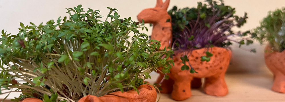 Entwerft und formt eure eigene Micorgreen Schale für euren Minigarten in der Küche! Beim ersten Termin formt und modelliert ihr eure eigene Microgreen Schale mit Untersetzer aus Terracotta Ton. Ihr habt die Möglichkeit verschiedenen Dekorationstechniken anzuwenden und euch kreativ auszuleben. Der Untersetzter wird von mir transparent glasiert. Terracotta speichert nach dem Brennen Wasser, sodass eure Microgreens immer gut befeuchtet sind. Eure individuelle Microgreen Schale ist ca. 2 Wochen nach dem Kurs abholbereit.